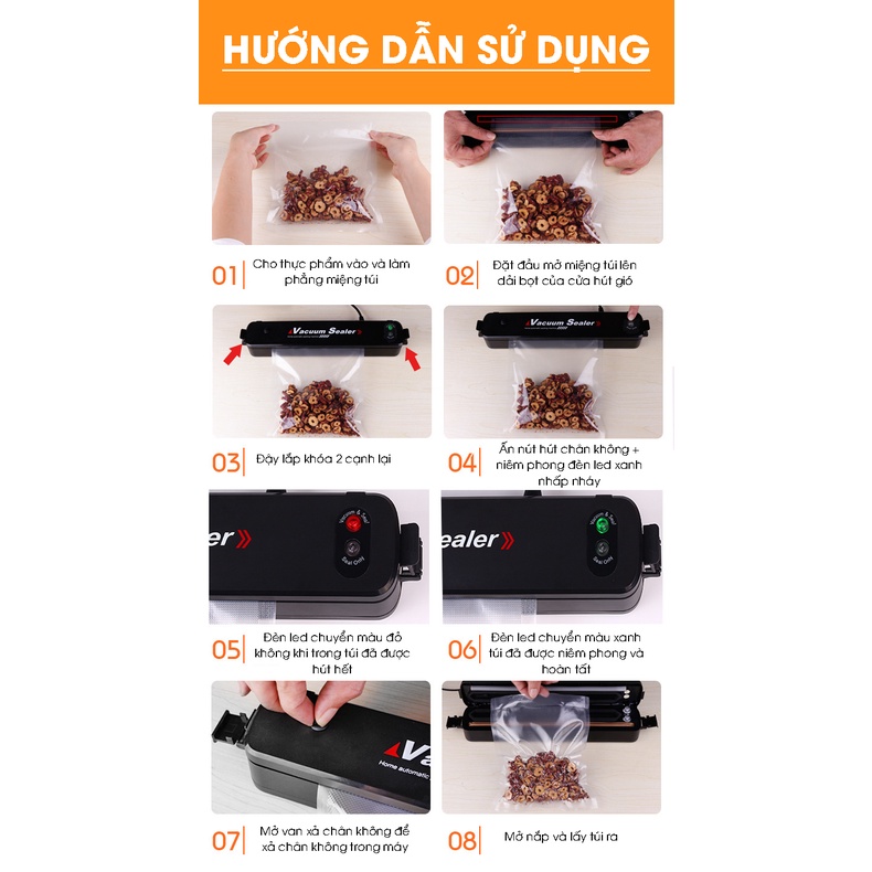 -Sản phẩm tiện dụng cho gia đình và rất dễ sử dụng, chưa đầy 15 giây là bạn đã có thể đóng gói sản phẩm tốt nhất.