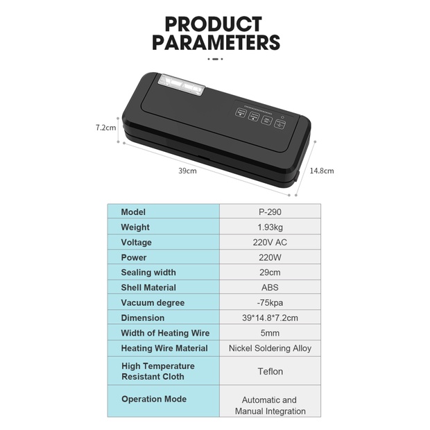 Máy hút chân không không kén túi P290Máy sử dụng cho hầu hết các loại túi, bao bì.