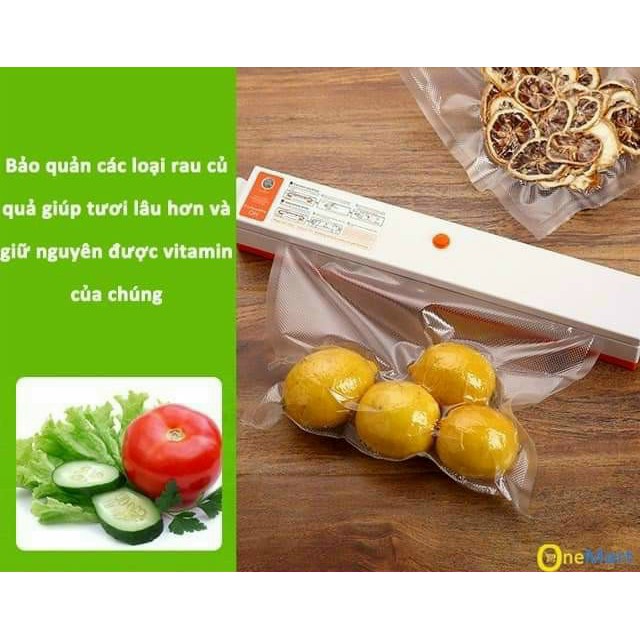 – Công dụng: Hút chân không + hàn túi nilon giúp bảo quản thực phẩm tốt hơn, lâu hơn và giữ được dinh dưỡng của thực phẩm.