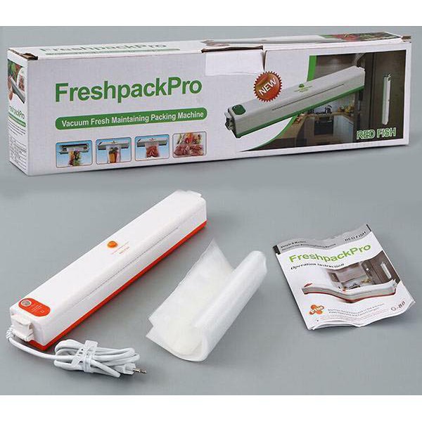 máy hút chân không kiêm hàn miệng túi thực phẩm Fresh Pack Pro là sản phẩm tiện ích sử dụng trong gia đình. Chuyên sử dụng cho việc bảo quản các loại thực phẩm, tươi, khô cũng như đóng gói các loại thực phẩm khác nhau. Giúp thực phẩm tươi ngon hơn, bảo quản lâu hơn, tiết kiệm diện tích trong khoang tủ lạnh của bạn.máy hút chân không kiêm hàn miệng túi thực phẩm Fresh Pack Pro sử dụng để đóng gói các loại thực phẩm khô như lạc, vừng, đậu đỗ…… hoặc các loại thịt cá khô. Với máy hút chân không thực phẩm Fresh pack pro không khí sẽ được rút ra tới 95% , ngăn ngừa sự phát triển của các vi khuẩn có hại và nấm mốc.Đối với thực phẩm tươi,sử dụng máy hút chân không sẽ giúp thực phẩm tươi lâu hơn tương tự như các loại thịt cá đông lạnh, thịt cá viên được bảo quản trong siêu thị.
