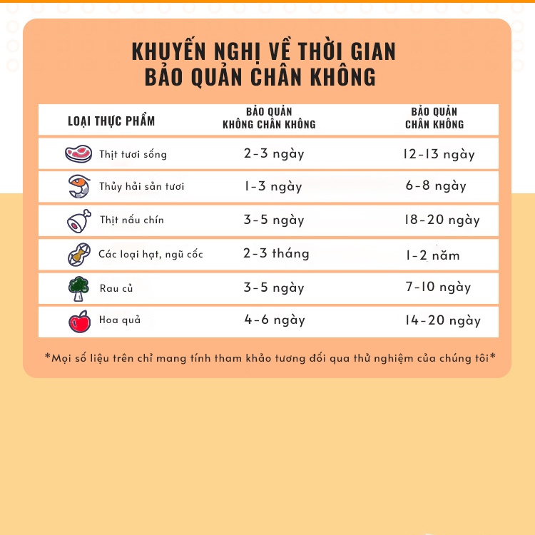 Nếu không sử dụng máy hút chân không thì khí oxy sẽ khiến thực phẩm nhanh bị hỏng, ngay cả khi bảo quản trong tủ lạnh cũng chỉ kéo dài được độ tươi trong khoảng từ 1 đến 3 ngày.