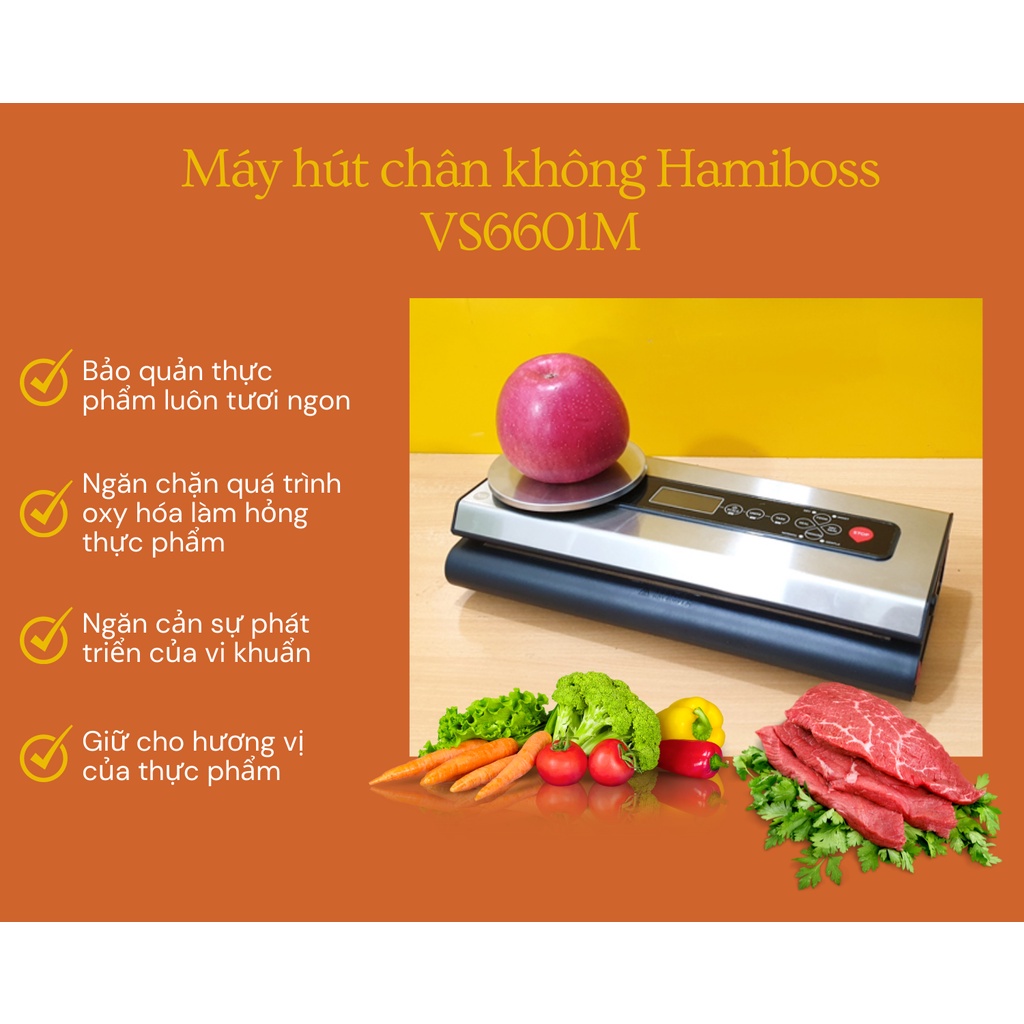 Máy hút chân không Hamiboss VS6601M với kiểu dáng hiện đại cùng khả năng hút chân không nhanh chóng, hiệu quả mang lại cho người dùng sự hài lòng và tin tưởng nhất.