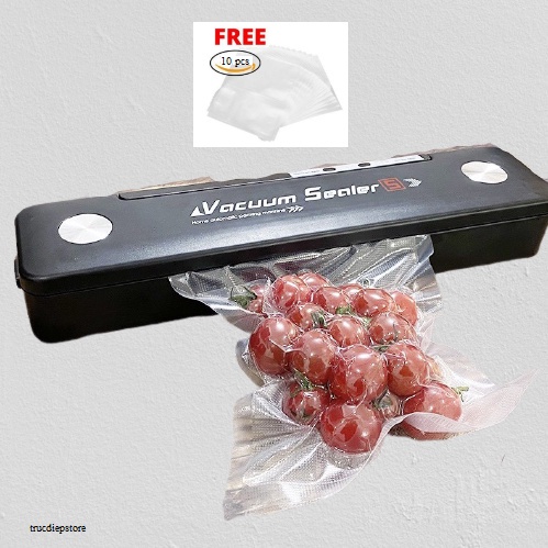 Lưu ý: Máy hút chân không Vacuum Sealer Model S Mới sử dụng túi hút chân không một mặt nhám chuyên dụng hoặc túi gấp có độ dày trên 20 lụa mới sử dụng được máy hút chân không. Túi hai mặt trơn không thể hút chân không, chỉ có thể hàn túi. Shop có bán túi hút chân không thực phẩm, Khách hàng có thể mua túi tại Shop.- 1 bộ sản phẩm bao gồm: 1 máy hút chân không + 1 sách hướng dẫn + 1 bộ 10 túi tặng kèm.