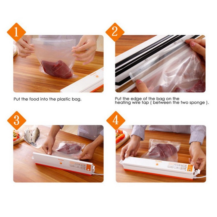 – Công dụng: Hút chân không + hàn túi nilon giúp bảo quản thực phẩm tốt hơn, lâu hơn và giữ được dinh dưỡng của thực phẩm.