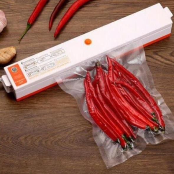 🌈 Chỉ cần cho thực phẩm vào túi, kẹp miệng túi vào máy, và nhấn nút. Máy sẽ hút kiệt không khí bên trong, sau đó tự động hàn kín miệng túi.