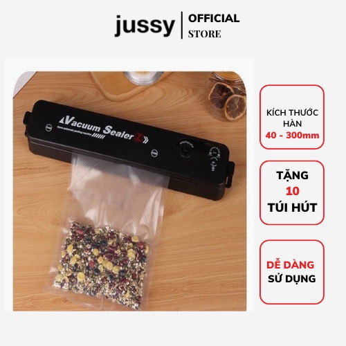 Máy Hút Chân Không Mini Jussy Official Kiêm Máy Ép Chân Và Hàn Miệng Túi Thực Phẩm Giúp Bảo Quản Lâu Hơn (Tặng 10 Túi)