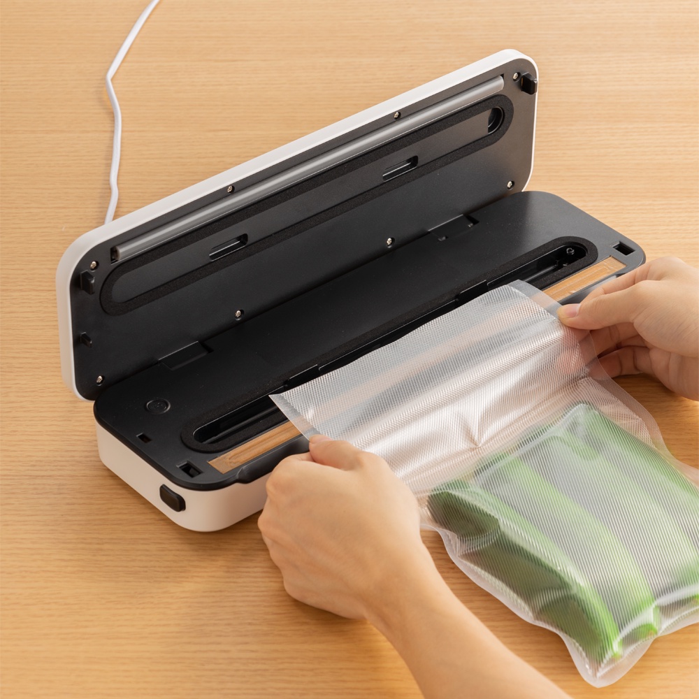 Chỉ cần cho thực phẩm vào túi, đặt miếng túi vào trong máy hút chân không và Mocato sẽ đảm nhận phần còn lại — loại bỏ tất cả không khí, tạo ra một lớp niêm phong kín khí và tự động dừng lại sau khi hoàn tất niêm phong.