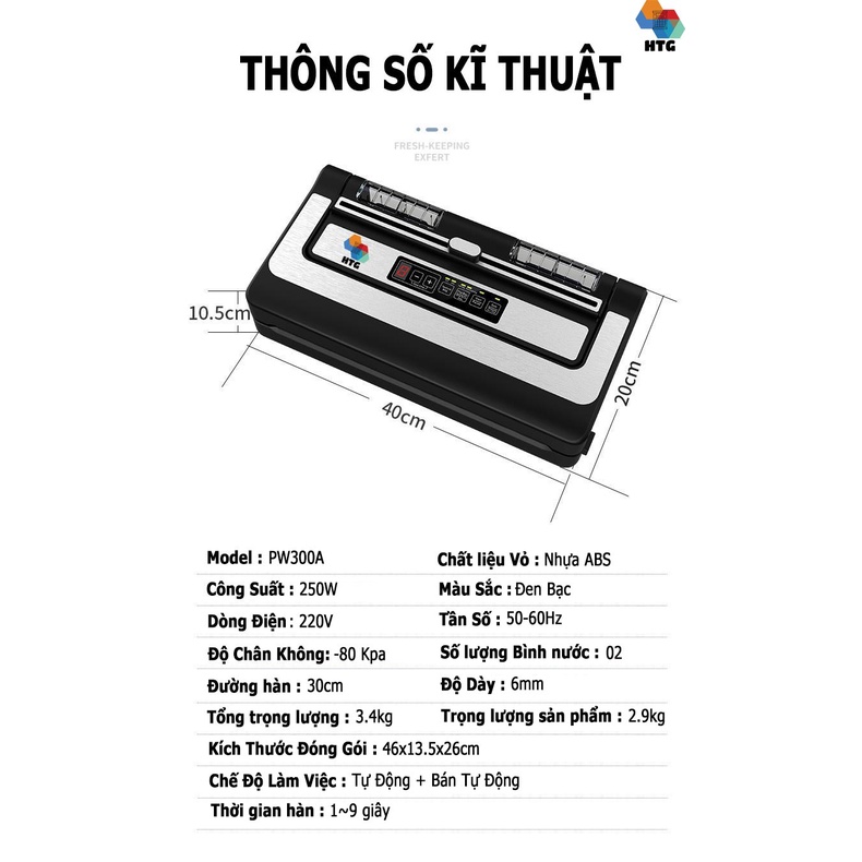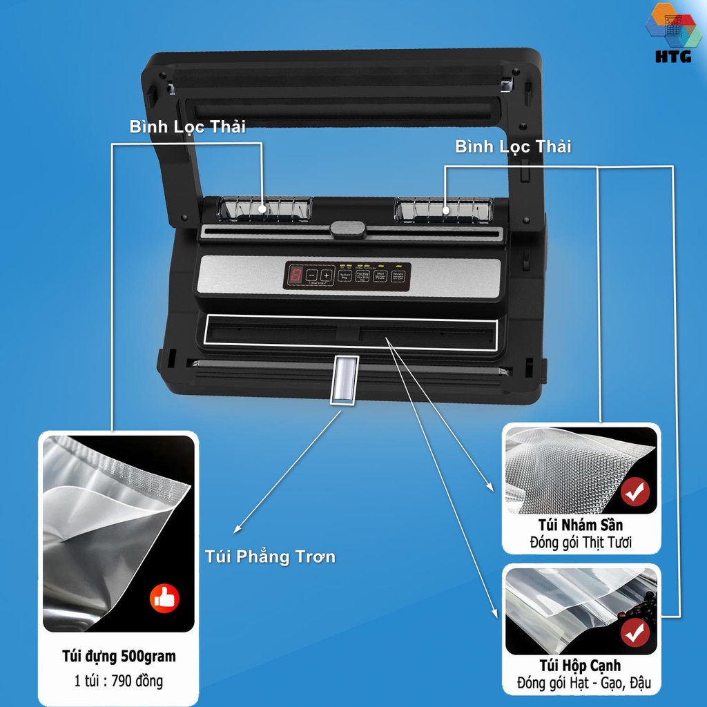 Máy hút chân không HTG-PW300A, hút mọi loại túi, công nghệ mới với chế độ hàn thông minh, hút 2 động cơ mạnh mẽ