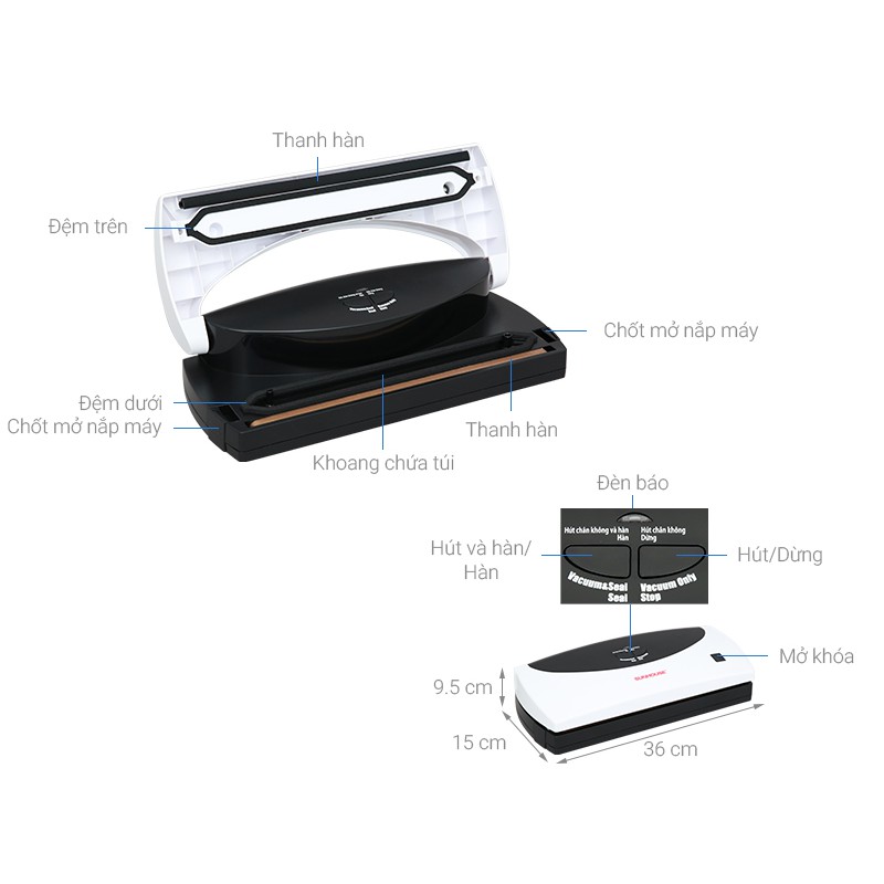 Đặc điểm khác :Hút chân không và hàn tiện lợi, đèn báo tín hiệu khi hoạt động