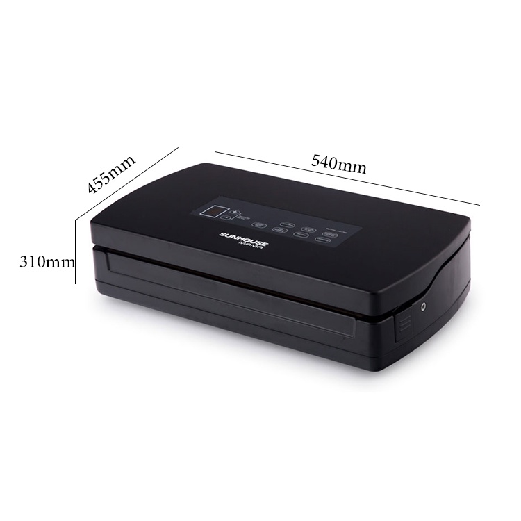 - Máy hút chân không Sunhouse đặc biệt phù hợp với 1 túi ni lông có 1 Mặt Trơn 1 Mặt Nhám. Thêm nữa máy còn có rãnh chứa nước nên sẽ không bị tràn ra ngoài từ bịch thực phẩm khi đang hút nên rất sạch sẽ và vệ sinh dễ dàng sau khi sử dụng.