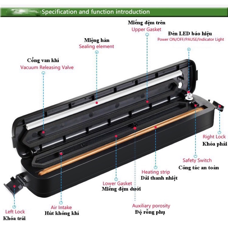 Giới thiệu Máy Hút Chân Không Thực Phẩm Kèm Hàn Miệng Túi Vacuum Sealer ( tặng 10 túi hút )