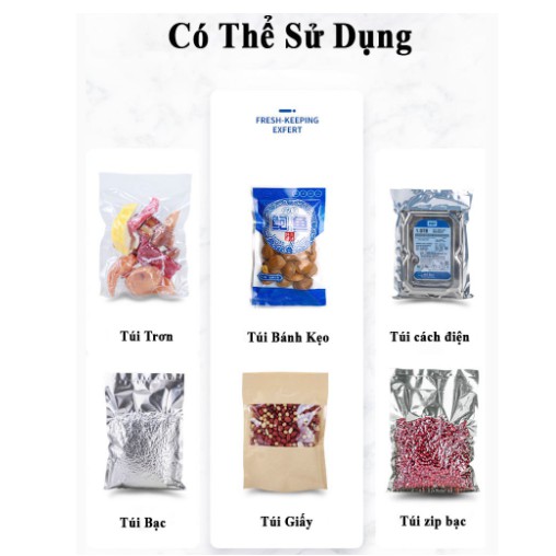 - Dây hàn dài 30cm, có thể hút cho mọi size túi cắt sẵn của hút chân không.
