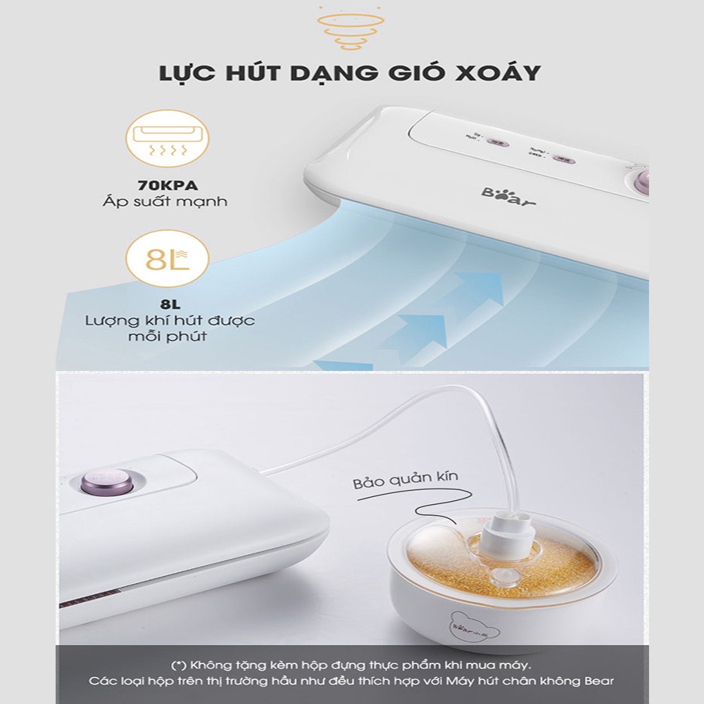 - Máy Hút Chân Không Bear FKJ-A01F1 với thiết kế nhỏ gọn, điều khiển cảm ứng thông minh tích hợp công nghệ hút chân không nhanh chóng chỉ trong vòng 30 giây.