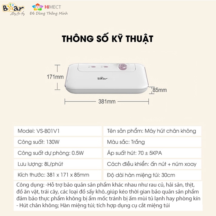 May hút chân không thực phẩm hàn miệng túi mini tiện dụng Bear VS-B01V1MÁY HÚT CHÂN KHÔNG BEAR