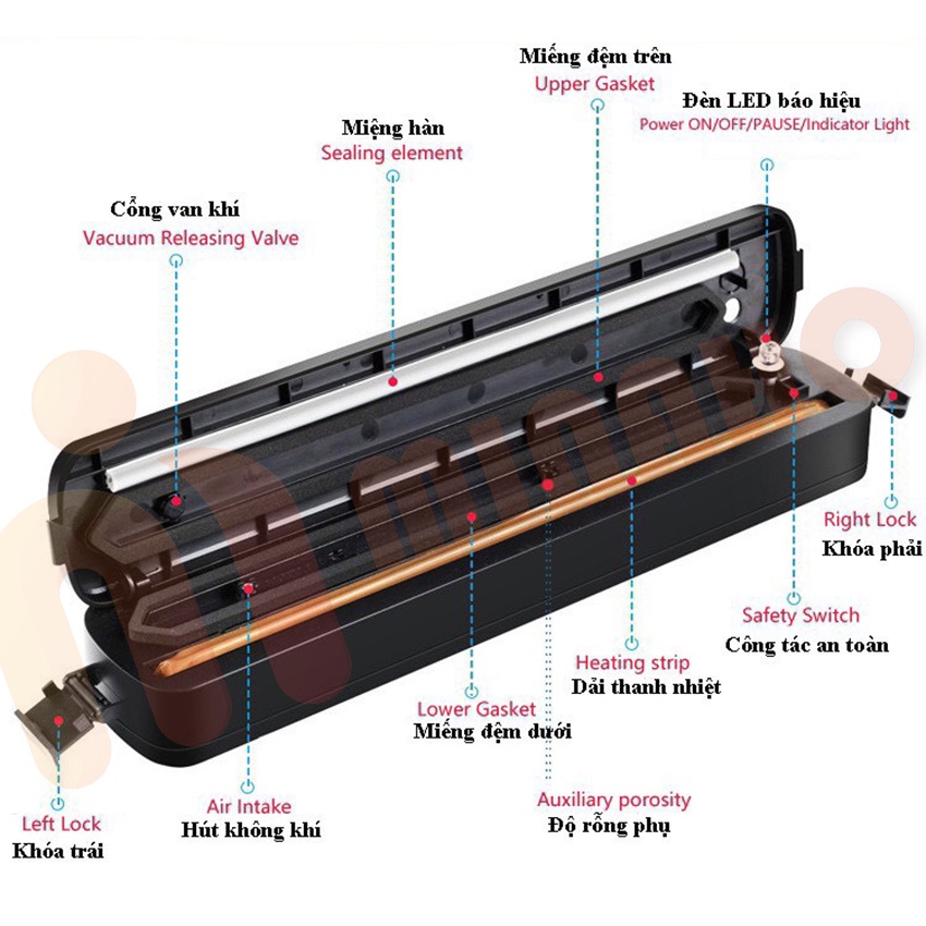 1: Không sờ vào bộ phận hàn túi của máy hút chân không khi đang cắm điện
