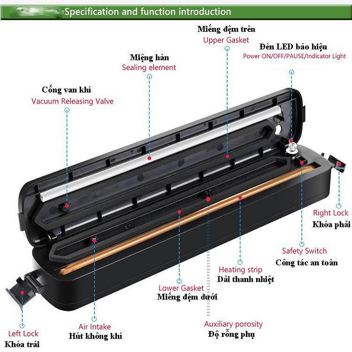 Giới thiệu Máy Hút Chân Không Thực Phẩm Kèm Hàn Miệng Túi Vacuum Sealer ( Kèm 100 túi hút )