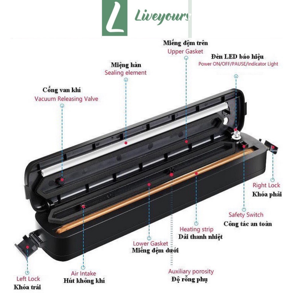 Máy Hút Chân Không Thực Phẩm Kèm Hàn Miệng Túi Vacuum Sealer - LiveyoursBẢO HÀNH 1 ĐỔI 1 TRONG VÒNG 3 THÁNG NẾU LỖI NHÀ SẢN XUẤT