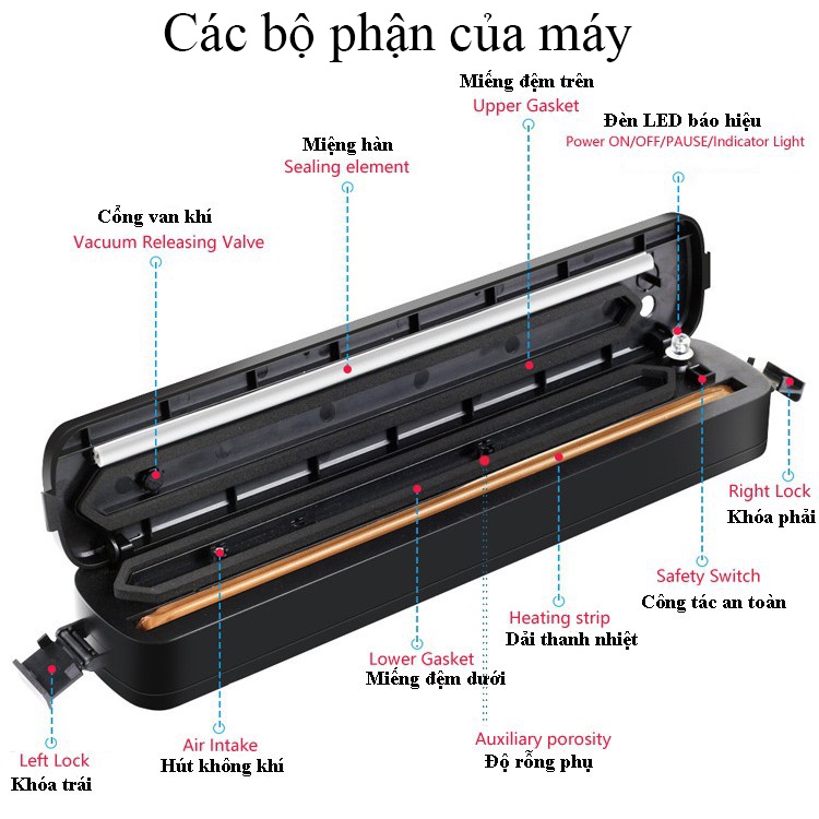 1: Không sờ vào bộ phận hàn túi của máy hút chân không khi đang cắm điện