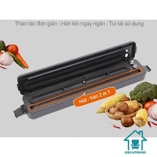 - Máy hút chân không thực phẩm Vacuum Sealer sử dụng cho việc bảo quản các loại thực phẩm, tươi, khô cũng như đóng gói các loại thực phẩm khác nhau. Giúp thực phẩm tươi ngon hơn, bảo quản lâu hơn, tiết kiệm diện tích trong khoang tủ lạnh của bạn.