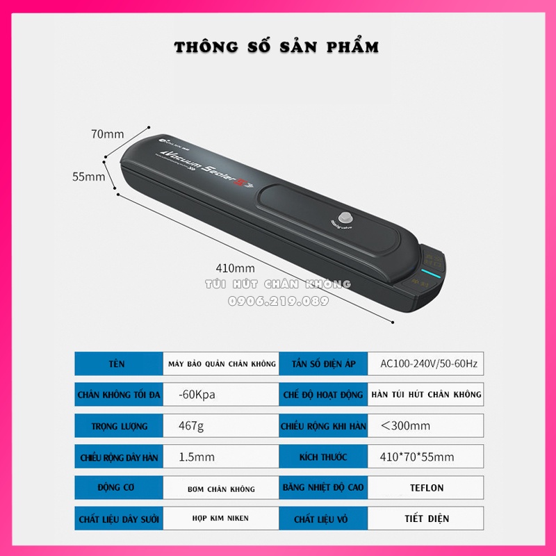 - Khả năng hút chân không và hàn miệng túi rất hiệu quả và mạnh mẽ.