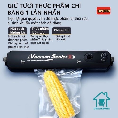 - Máy hút chân không thực phẩm Vacuum Sealer sử dụng cho việc bảo quản các loại thực phẩm, tươi, khô cũng như đóng gói các loại thực phẩm khác nhau. Giúp thực phẩm tươi ngon hơn, bảo quản lâu hơn, tiết kiệm diện tích trong khoang tủ lạnh của bạn.