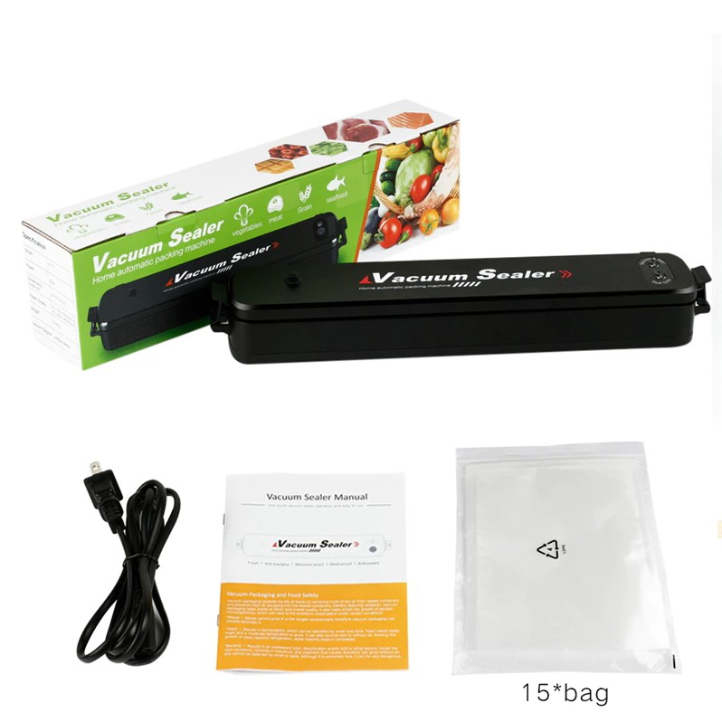 - 1 bộ sản phẩm bao gồm: 1 máy hút chân không + 1 sách hướng dẫn + 1 bộ 15 túi tặng kèm.