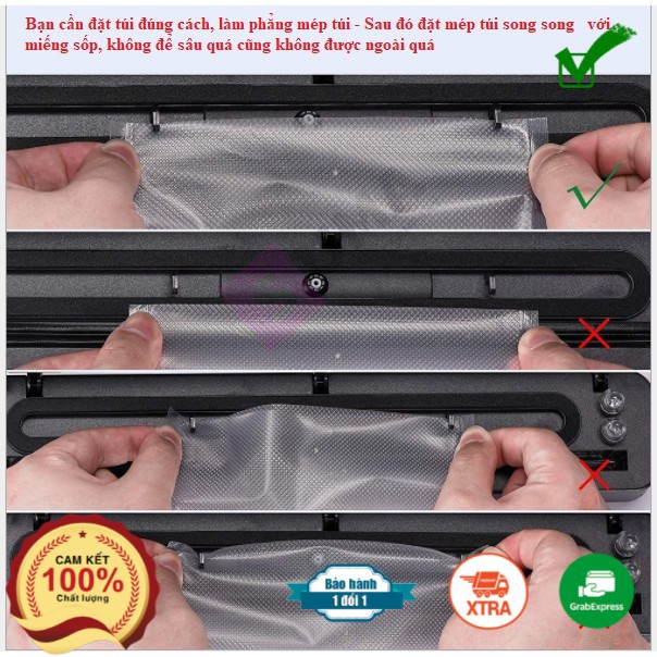 1: Không sờ vào bộ phận hàn túi của máy hút chân không khi đang cắm điện