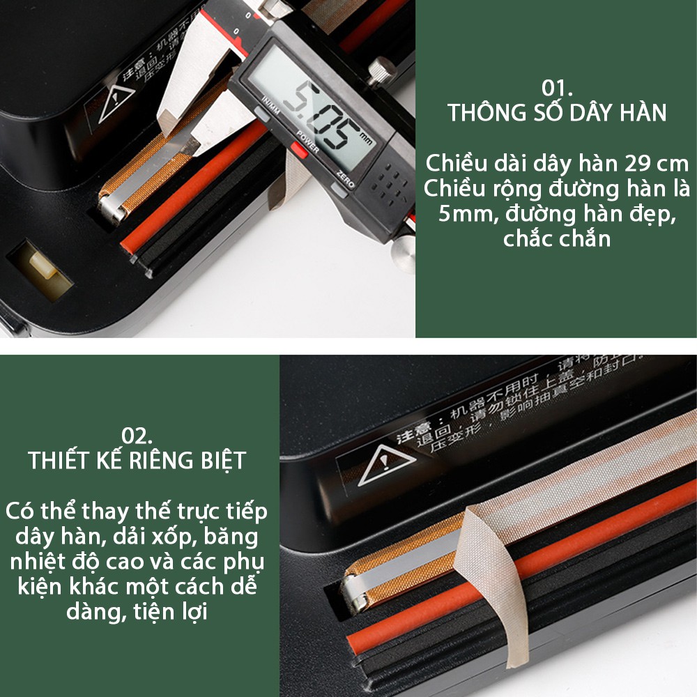 - Phím đèn LED điều chỉnh có thể thay đổi thời gian hút và hàn chân không