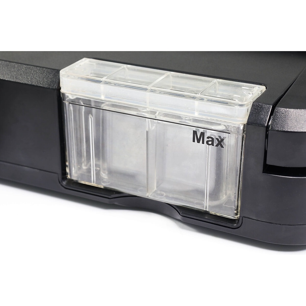 Máy có hộp chứa nước bên cạnh, dùng chứa nước thừa khi hút đồ có nước