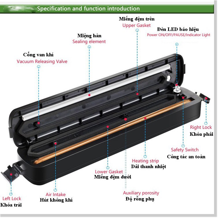 THÔNG SỐ KỸ THUẬT CỦA MÁY HÚT CHÂN KHÔNG VACUUM SEALER