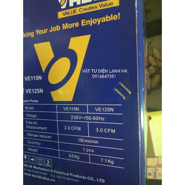 MÁY HÚT CHÂN KHÔNG VALUE 2.0 CFM MODEL: VE115N Lưu lượng bơm: 51-57 lít/phút Chân không tuyệt đối 150 Micron