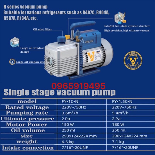 Máy hút chân không Value FY-1.5C-N dòng nội địa Trung cao cấp - Máy hút chân không điều hoà Value cao cấp
