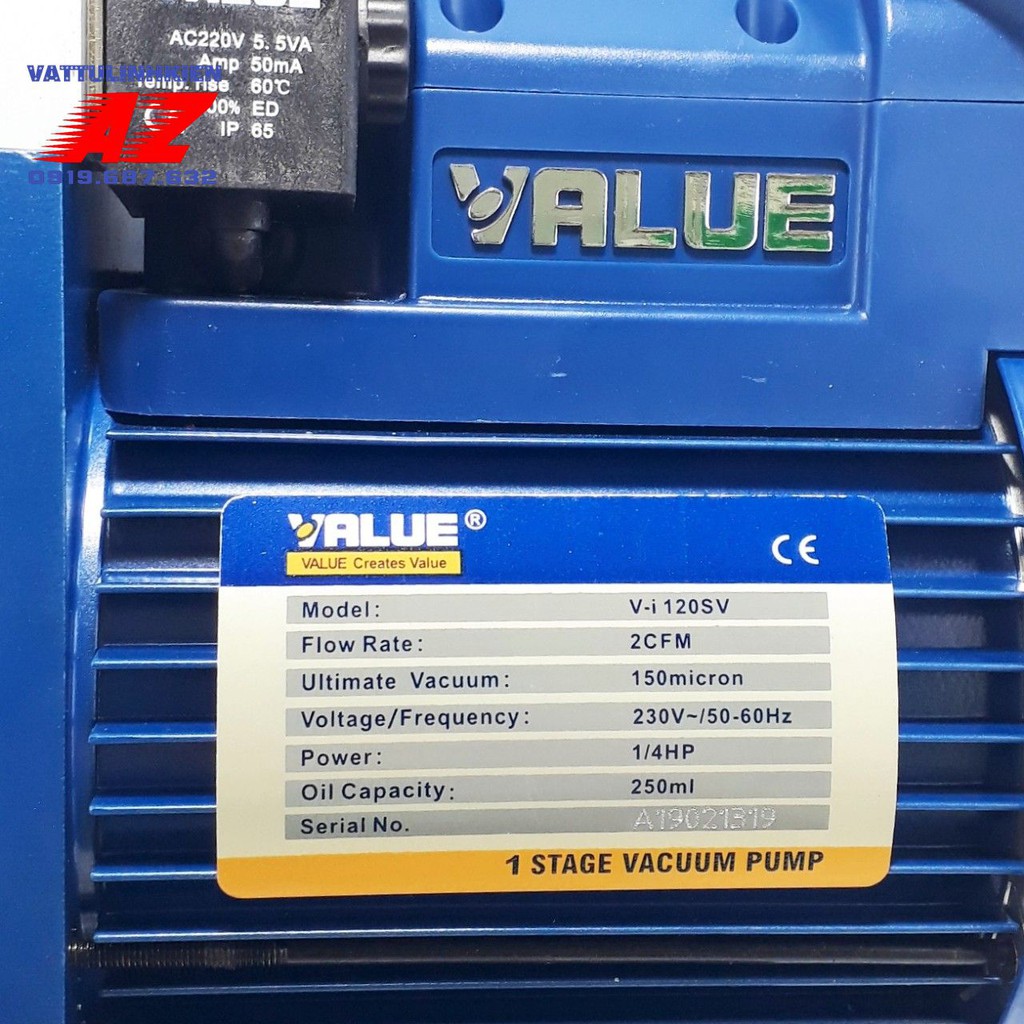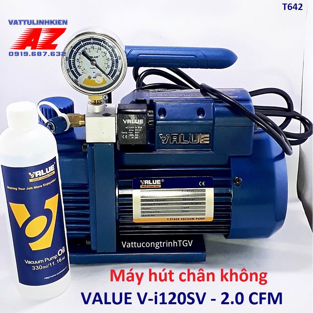 Máy hút chân không Value V-i120SV loại 2.0 CFM kèm đồng hồ hiển thị báo ápModel: V-I120SV