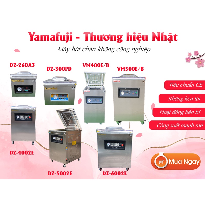 Máy hút chân không Yamafuji DZ-4002E (Inox 201)Đây là dòng máy được sản xuất trên công nghệ tiên tiến và hiện đại của Nhật Bản, với độ bền bỉ và chắc chắn cao, cho khả năng hút kiệt vượt trội.