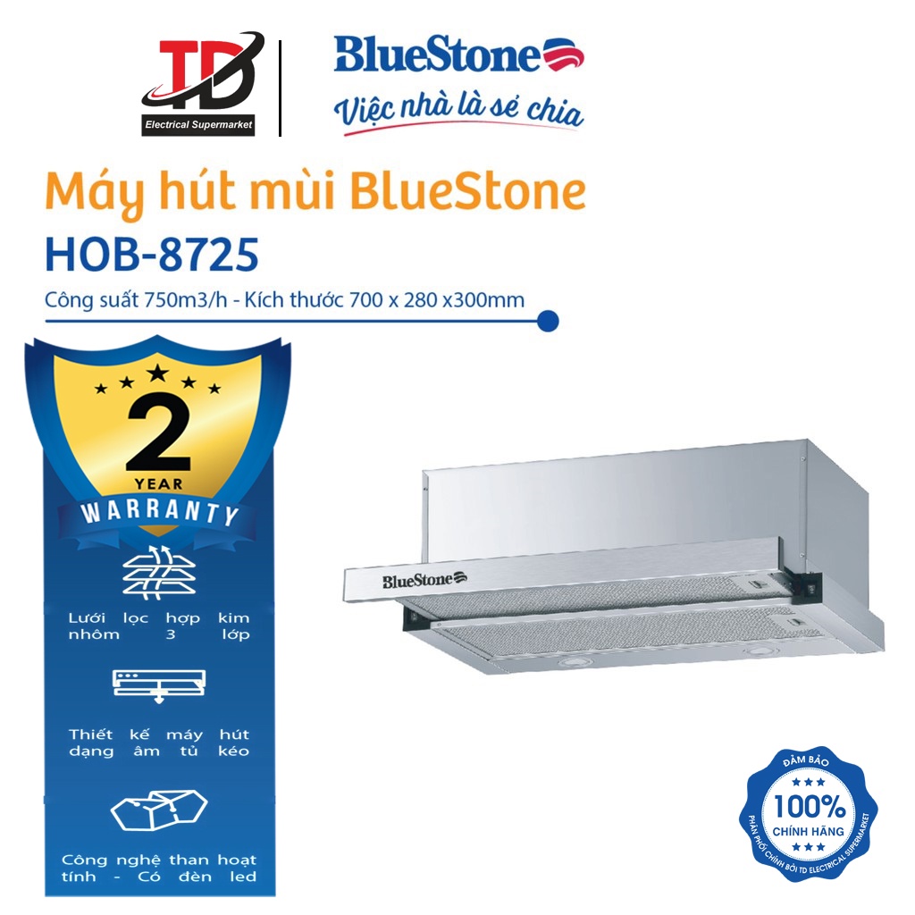 Thiết Bị Điện Gia Dụng > Đồ gia dụng nhà bếp > Máy hút khói || [Mã 44ELSALE2 giảm 7% đơn 300K] Máy hút mùi âm tủ BlueStone HOB-8725 Công suất hút 750 m³/h - Bảo hành 2 nămCòn hàng