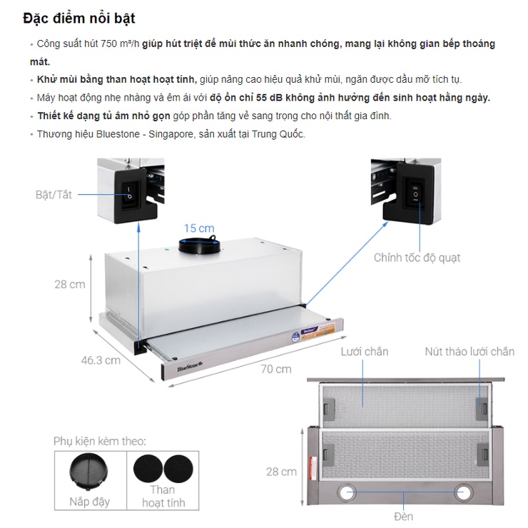 Thương hiệu: Bluestone | Xem thêm các sản phẩm Máy hút khói, khử mùi của BluestoneMô tả ngắn