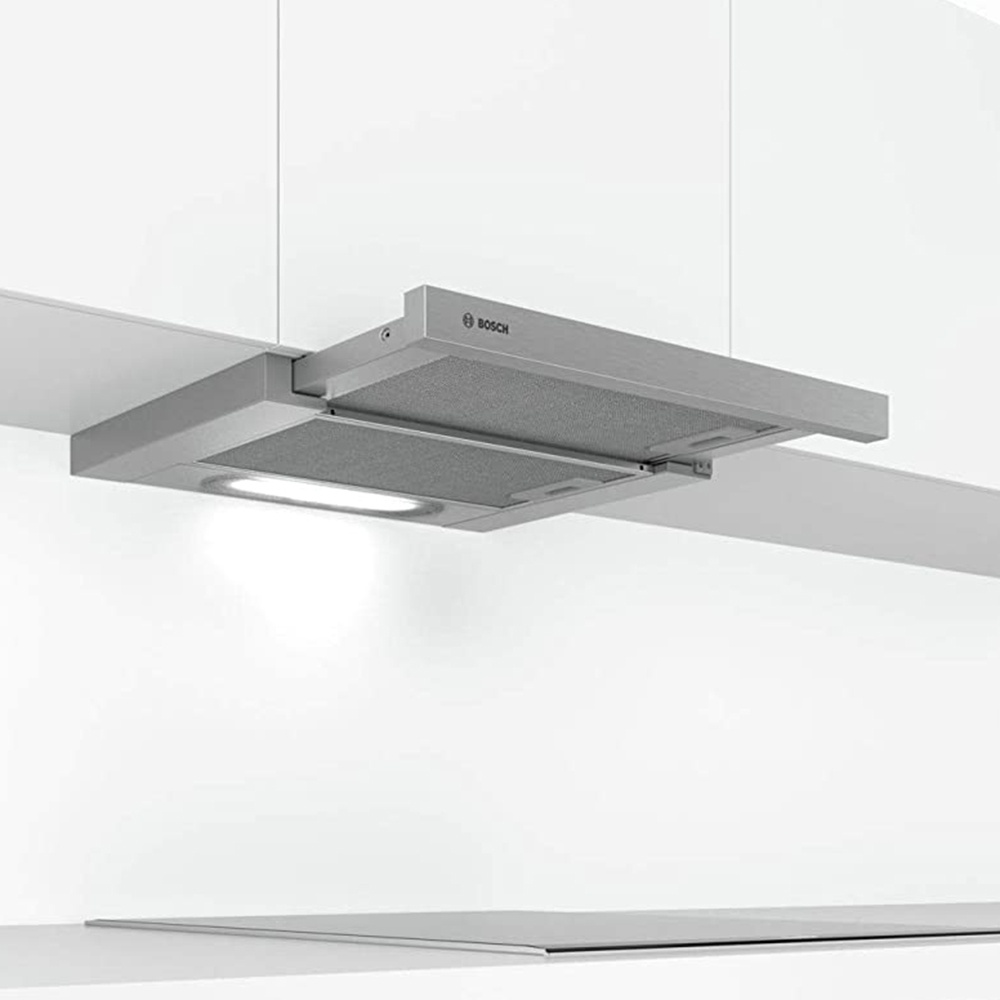 Hút mùi Bosch mái trượt size 60cm. Cực gọn gàng cho gian bếp và phù hợp với các bếp từ Bosch phổ biến size 60cm-Độ ồn