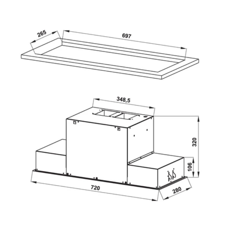 - Máy hút mùi âm tủ Hafele HH-BI72A (533.80.027) thiết kế âm tủ dạng phẳng, sang trọng tiết kiệm cho không gian bếp. Chất liệu thép không gỉ sáng bóng chống bám dấu vân tay hiệu quả.