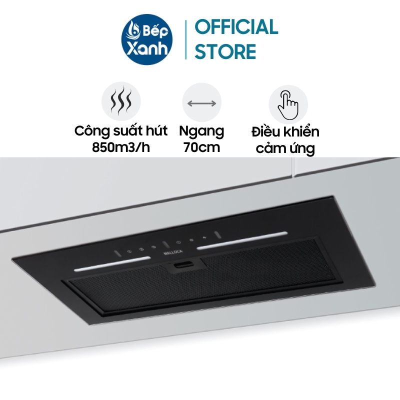 Giới thiệu Máy Hút Mùi Âm tủ Malloca MH 700GT - Công Suất Hút 850 m3/h - Ngang 70cm - Kính Đen