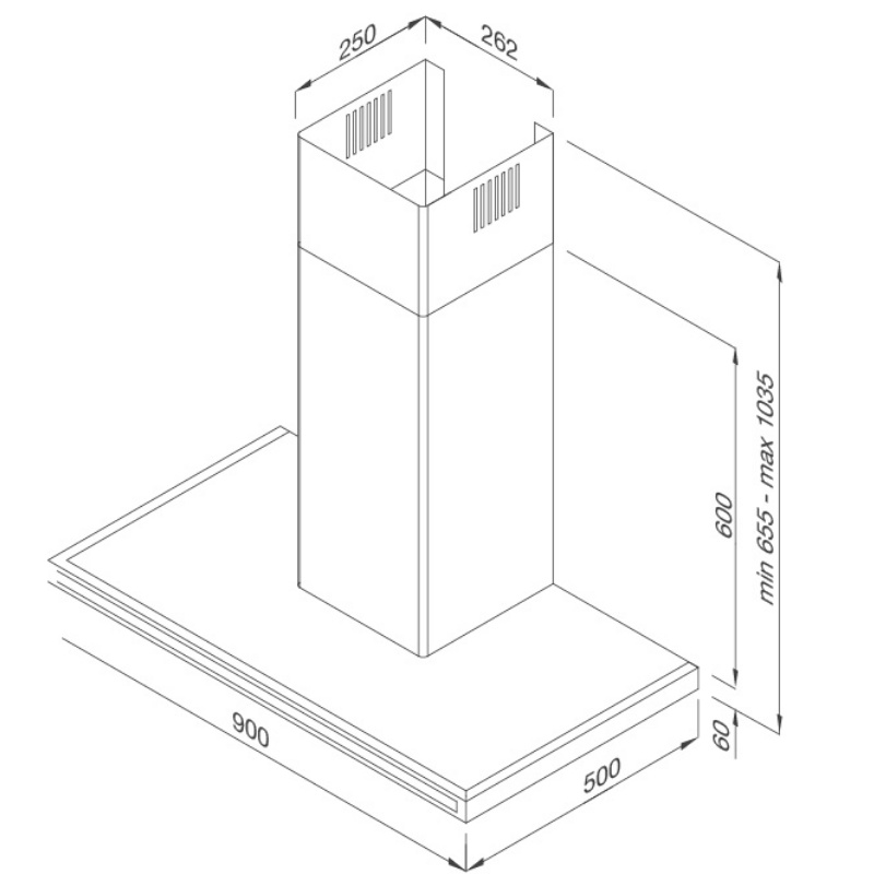 - Loại máy: Máy hút mùi gắn áp tường
