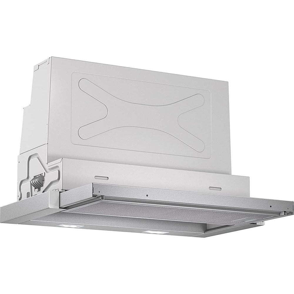 - Máy hút mùi Bosch DFR067A50 được thiết kế theo kiểu âm tủ, phần động cơ máy hút mùi có thể giấu bên trong tủ giúp tiết kiệm diện tích không gian bếp nấu.
