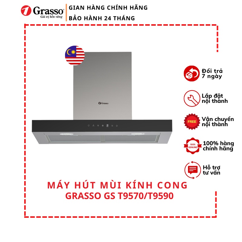 Thiết Bị Điện Gia Dụng > Đồ gia dụng nhà bếp > Máy hút khói || Máy hút mùi chữ T Grasso GS T9570/T9590 phím nhấn cảm ứngCòn hàng