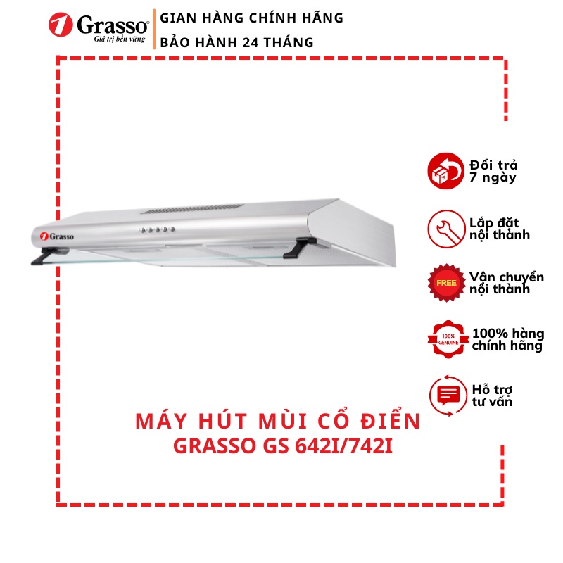 Thiết Bị Điện Gia Dụng > Đồ gia dụng nhà bếp > Máy hút khói || Máy hút mùi cổ điển Grasso GS 642I/742I nhỏ gọn, dễ lắp đặt, thích hợp chung cư miniCòn hàng