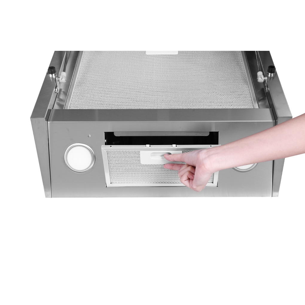 - Lưới lọc bằng chất liệu nhôm lọc dầu mỡ, hạn chế những chất này đi vào sâu trong linh kiện, ảnh hưởng đến hiệu quả hút mùi và làm giảm tuổi thọ máy.
