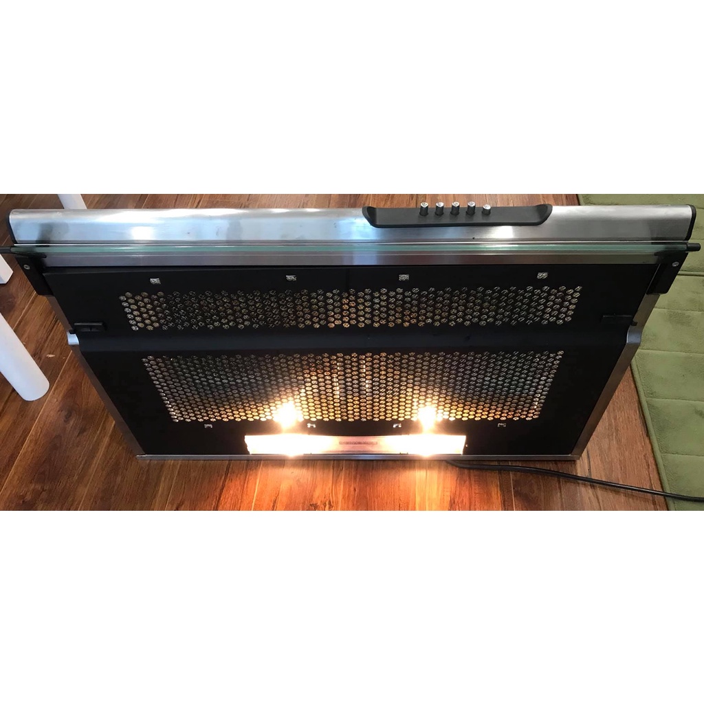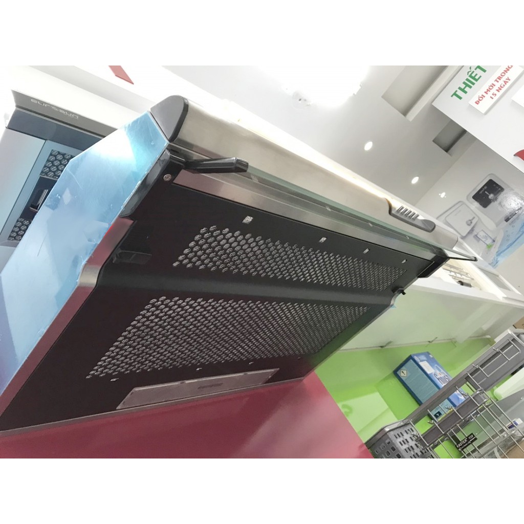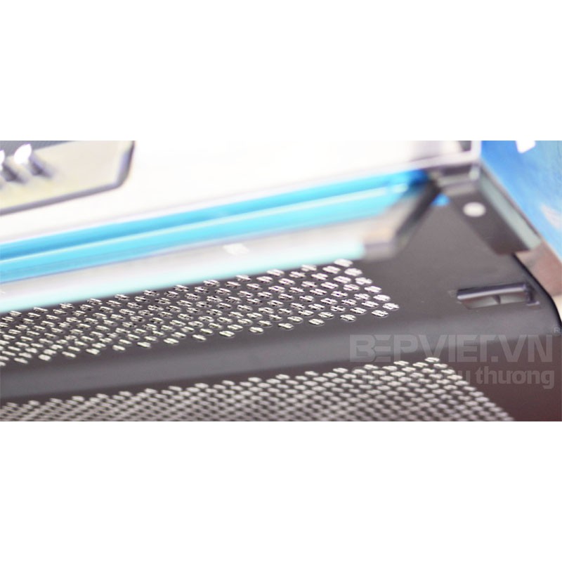 Mặt dưới của máy có 2 phin lọc mỡ bằng lưới Aluminum 3 lớp giúp bảo vệ động cơ bên trong máy, 2 tấm lưới này có thể tháo rời ra để vệ sinh một cách dễ dàng. Máy có 2 đèn chiếu sáng đảm bảo đủ ánh sáng cho việc đun nấu được dễ dàng hơn. Máy sử dụng nguồn điện 220V/50Hz phù hợp điện lưới Việt Nam.