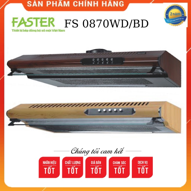 Máy Hút Mùi Faster FS 0870WD/BD,màu vân gỗ ,Dáng cổ điển ,sang trọng-[NhaBepXinh] Máy Hút Khói,Khử Mùi Nhà Bếp -BH 24T-Máy hút mùi Faster FS-0870WD/BD được sản xuất trên dây chuyền công nghệ hiện đại và tiên tiến của hãng Faster, với chất liệu vỏ ngoài bằng men giả vân gỗ màu nâu nhạt mang vẽ đẹp cổ điển và hài hòa theo phong cách của châu Âu. Máy được trang bị động cơ Turbin đôi với công suất 2x95 W có khả năng hoạt động mạnh mẽ và cực kỳ hiệu quả, sẽ giúp hút sạch khói bụi và mùi hôi do quá trình nấu nướng sinh ra, trả lại một không gian bếp trong lành, thoáng đãng