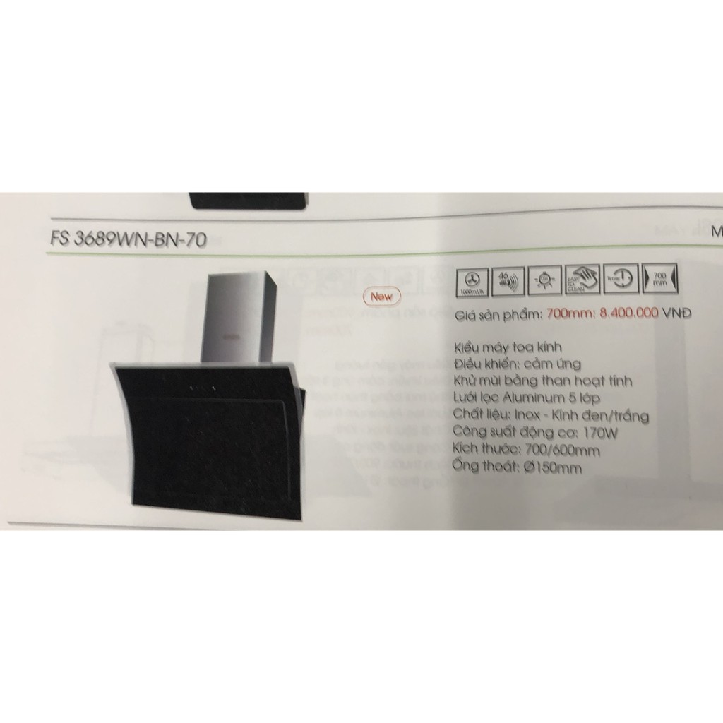 - Tên sản phẩm: Máy Hút Mùi Faster FS 3689BN 70