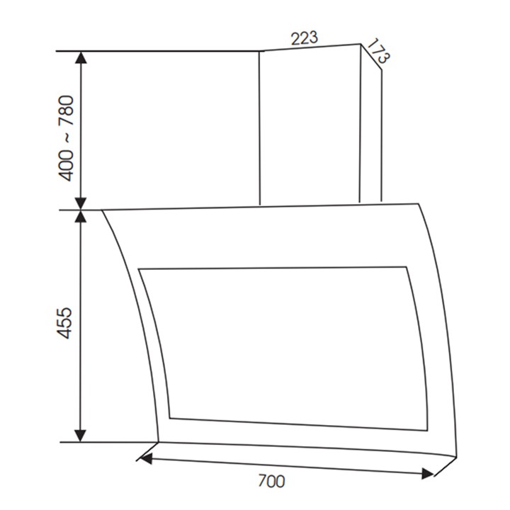 - Loại sản phẩm: máy hút mùi dạng nghiêng