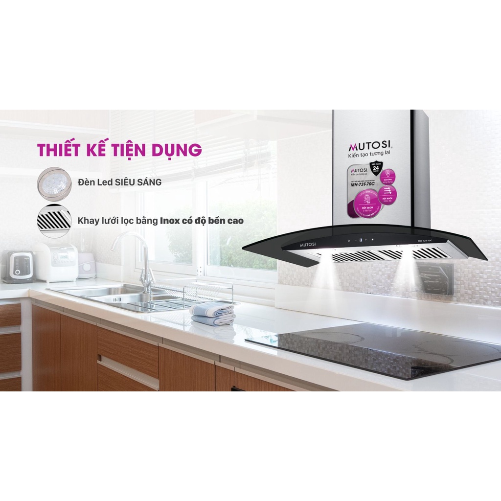 Máy Hút Mùi Kính Cong Cảm Ứng Mutosi MH-73T-70CGiới thiệu sản phẩm Máy Hút Mùi Kính Cong Cảm Ứng Mutosi MH-73T-70C