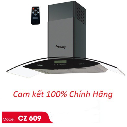 Máy hút mùi kính cong Canzy CZ 609 (Cảm ứng siêu nhạy, Máy siêu khỏe, Hút êm, Có điều khiển xa)